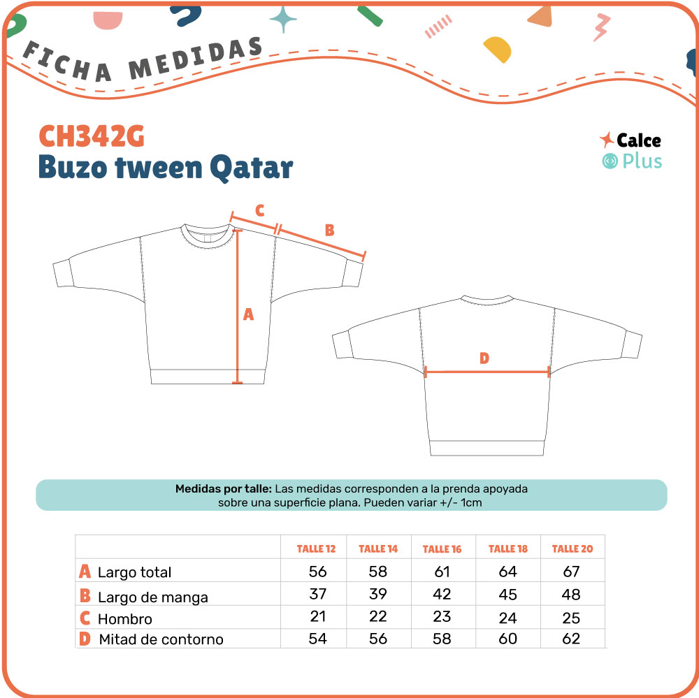 Nuestro buzo Qatar para preadolescentes está confeccionado en frisa. Su estampa lateral le suma un toque canchero y moderno, mientras que los puños y el cuello de ribb garantizan comodidad y un calce perfecto.